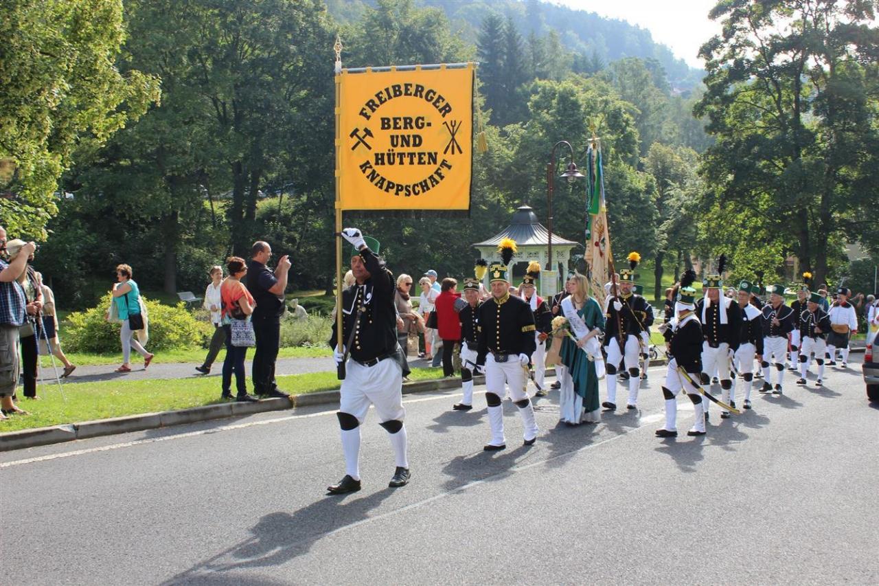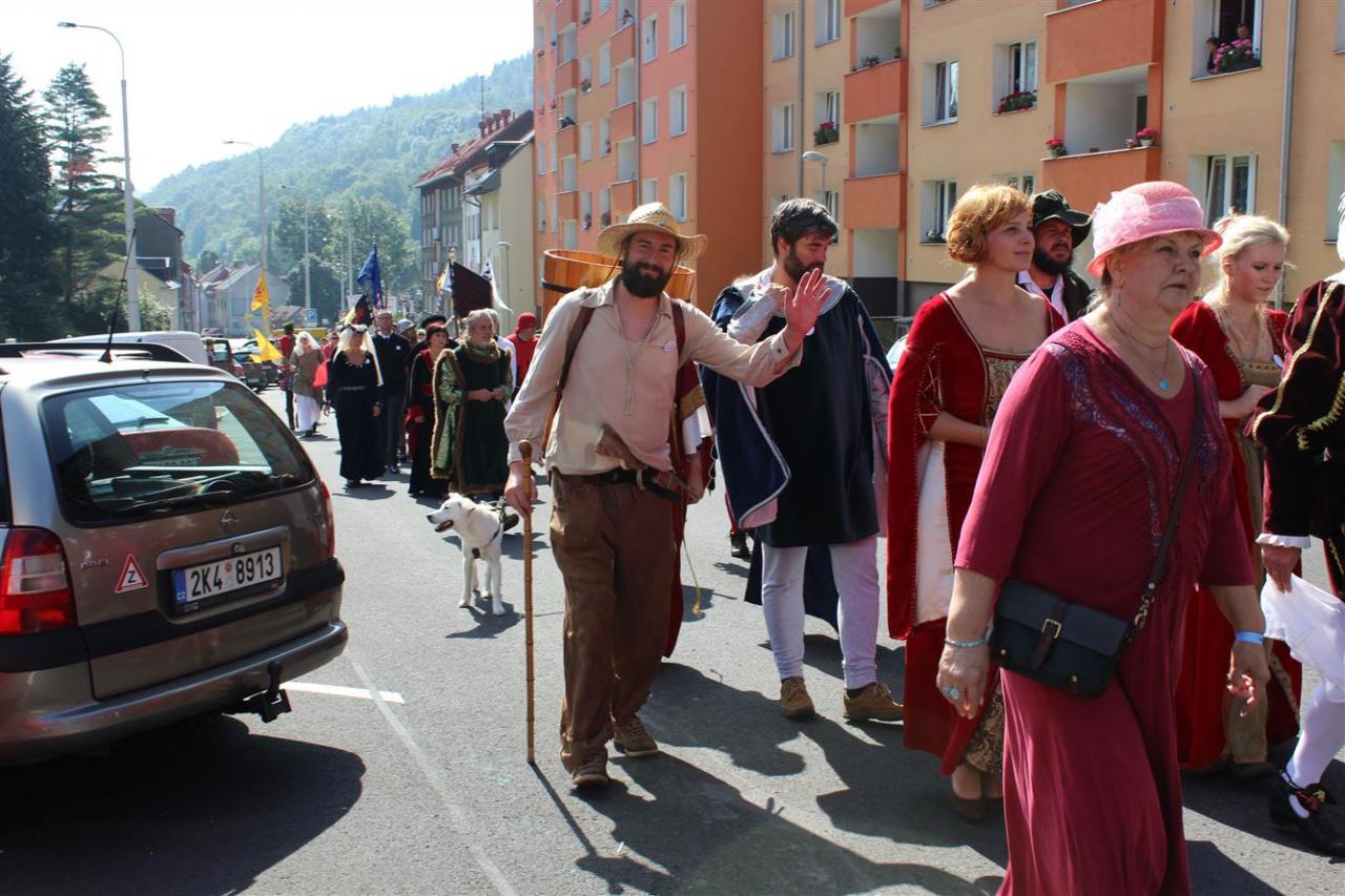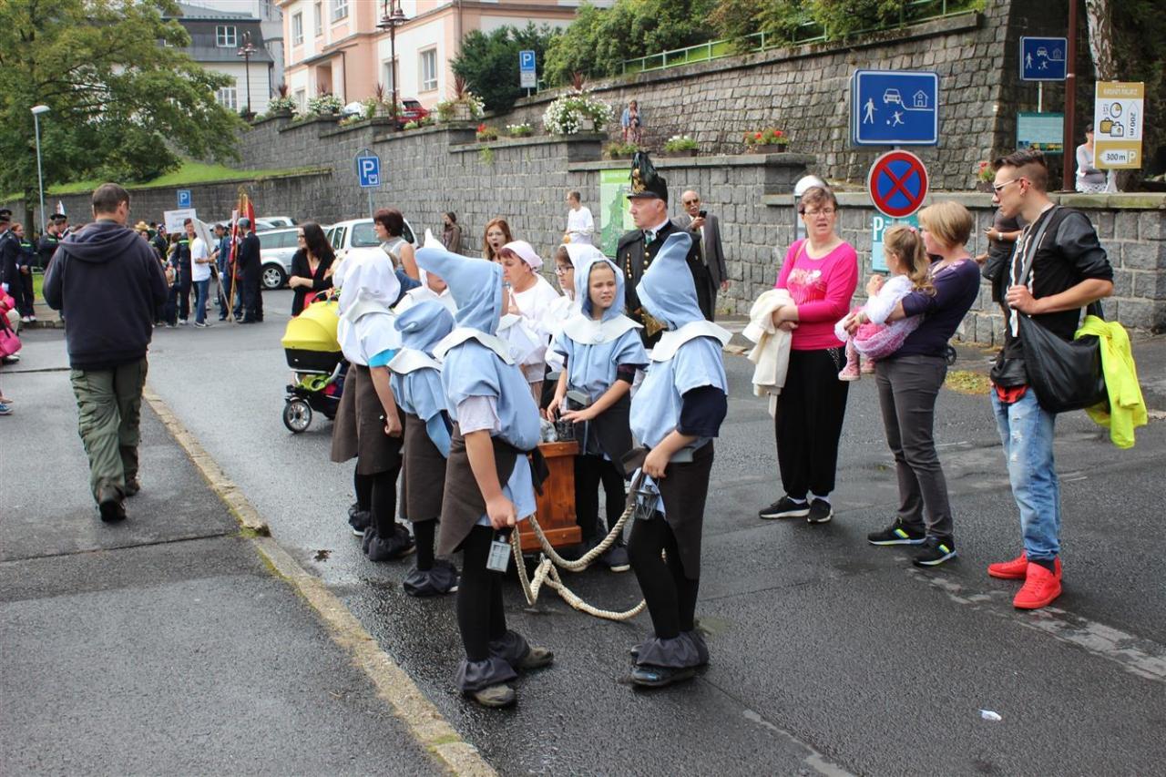 Město Jáchymov bylo zastoupeno předními představiteli města, panem starostou a paní místostarostkou, zástupci ZŠ Jáchymov kráčeli v čele s paní ředitelkou, dále malí permoníčci, kteří si připravili pěknou říkanku. V průvodu následovali: Skautské středisko Arnika, Sbor dobrovolných hasičů, Tělovýchovná jednota, horníci dolu Svornost s představiteli Lázní Jáchymov. Průvodu se zúčastnila řada hornických spolků z České republiky a sousedního Saska. Zpestřením byli lyžaři z Oberwiesenthalu a cyklisté z Ostrova, kteří svým oblečením a výstrojí připomněli začátky těchto sportů v Krušných horách.