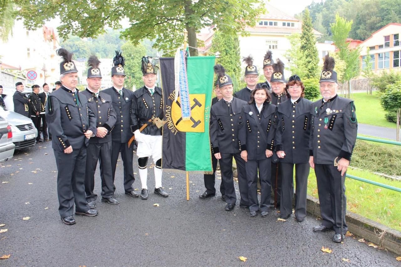 Slavnostní průvod byl zakončen před kostelem svatého Jáchyma. Paní místostarostka Ingeborg Štiková společně se svatou Barborou, patronkou horníků, dekorovala prapory přítomných hornických spolků slavnostní stuhou. Následovala čestná salva Ostrostřelců Ostrov, kteří rovněž šli v průvodu. Poté přivítal všechny přítomné starosta města Jáchymov Ing. Bronislav Grulich.