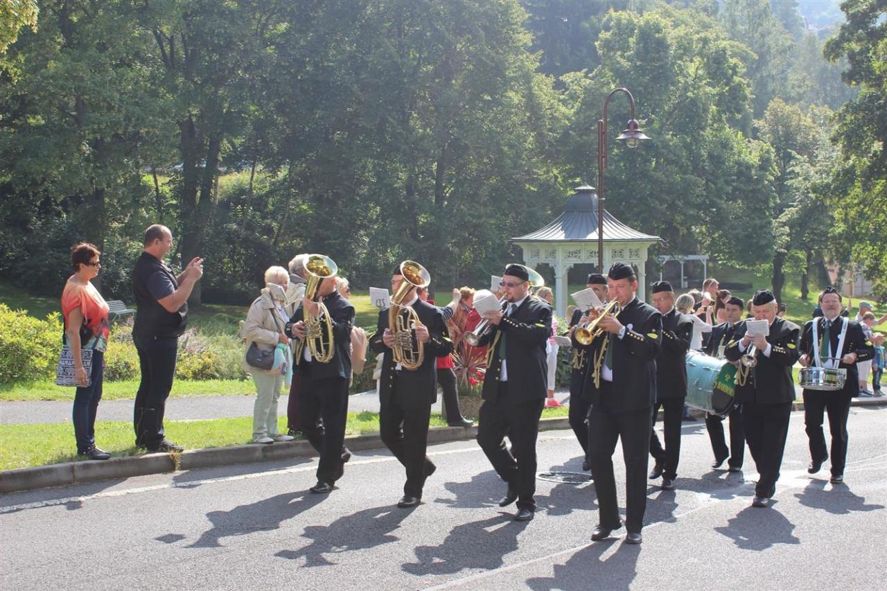 V sobotu 20. srpna ráno v osm hodin zazněly zvony kostela svatého Jáchyma, které zahájily slavnostní den. Pak jezdilo městem auto s reproduktorem, které vyzývalo občany města Jáchymova k účasti ve slavnostním průvodu, který v 10 hodin vyšel od Lázeňského centra Agricola.