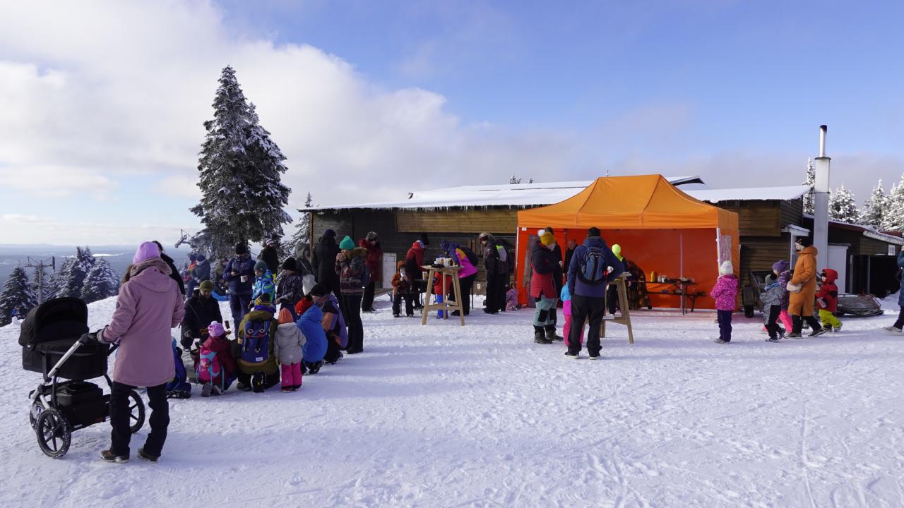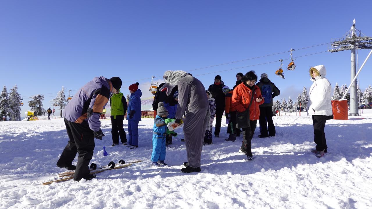 První únorová sobota nám nachystala krásné slunečné počasí, obloha byla jako vymetená, všude bylo bílo a ticho, ale jen do chvíle, než se na úpatí hory objevilo první dítě. Promiňte, vlastně badatel!