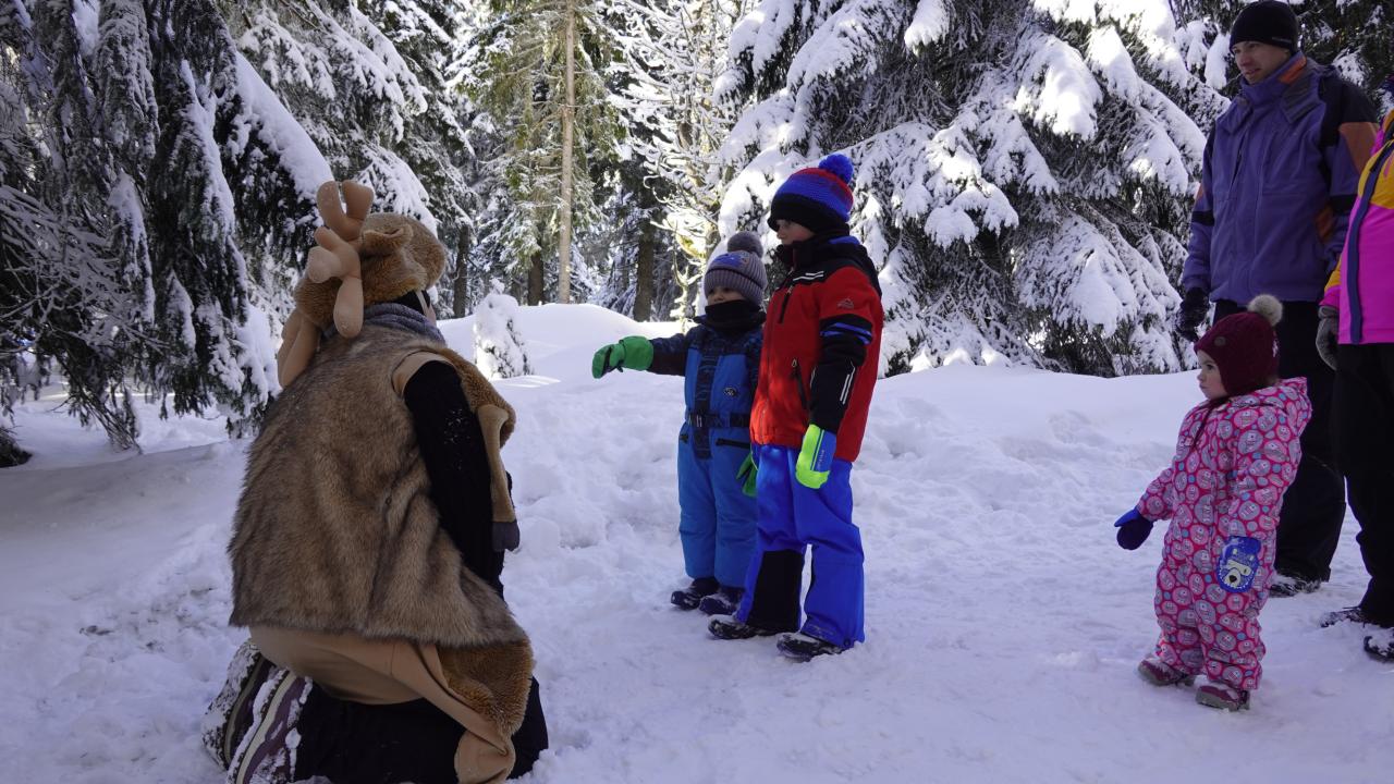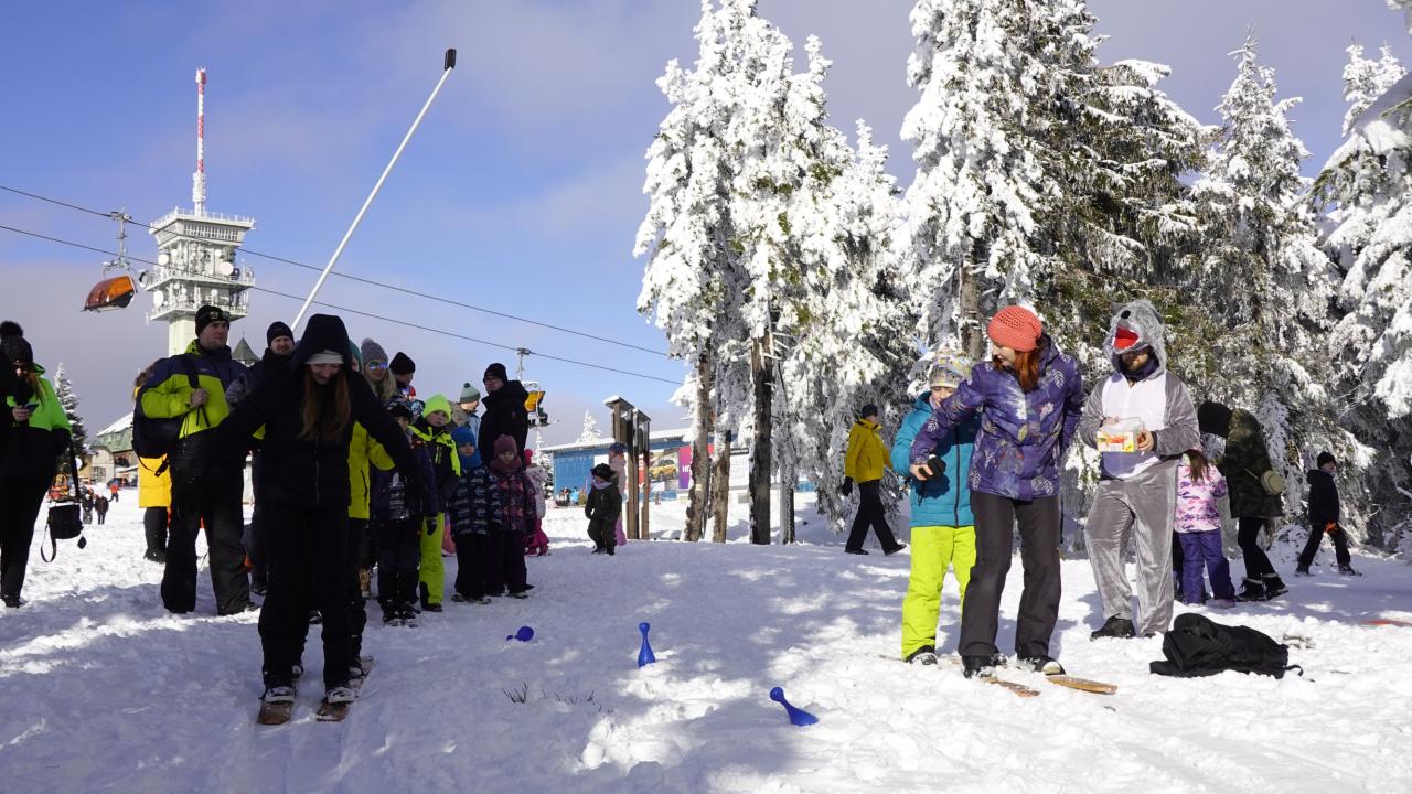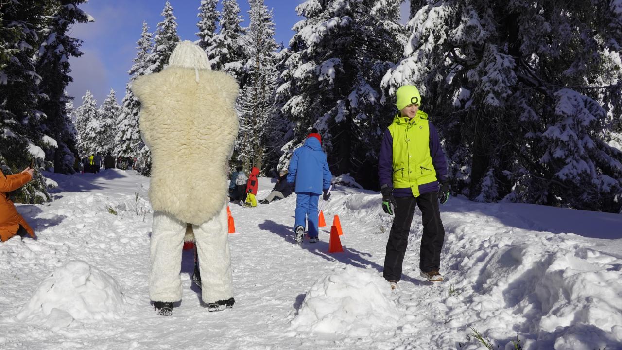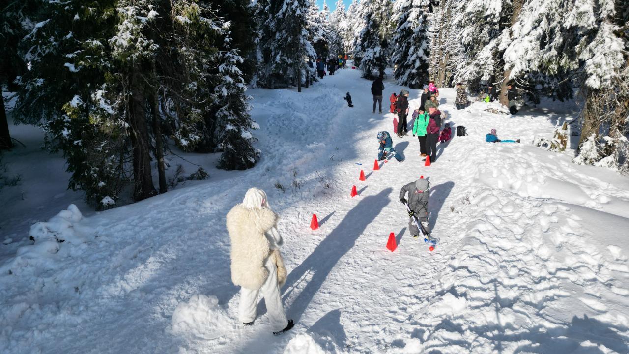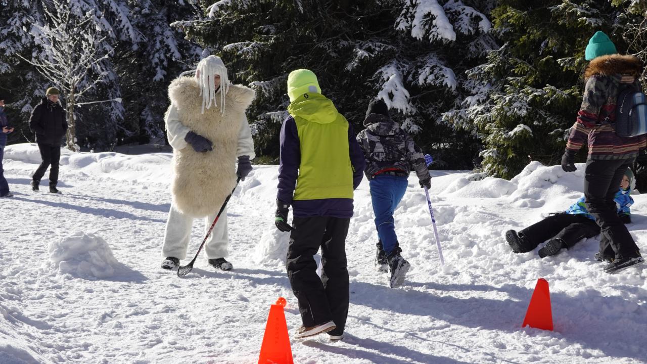 Aby se malí průzkumníci dostali na vrchol, museli nejprve získat mapu a tajemnou indicii, vždyť přeci, když hledám Yettiho, musím o něm něco vědět! Teprve ten, kdo prokázal odvahu, mohl usednout na lanovku, ze které už nebylo cesty zpět. Po náročném výstupu vedla cesta jasným směrem do Yettiho ledové země, kde na naše průzkumníky čekalo sedm disciplín, které měly prověřit jejich zdatnost, šikovnost a důvtip, tolik potřebný pro výpravu do zasněžené krajiny, kde byl Yetti spatřen. Cesta byla dlouhá a namáhavá, v hlubokém sněhu se šlo ztěžka a pomalu, ale kdo chtěl, Yettiho našel. I když se ukázalo, že Sněžný muž je lstiví a mazaný. Kdo vytrval, byl po zásluze odměněn sladkostí, maličkostí a butonem na památku. No, a protože při každé výpravě vyhládne, dostal jako malý bonus každý buřtíka a teplý čaj.