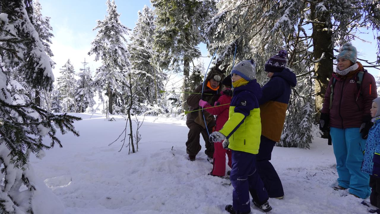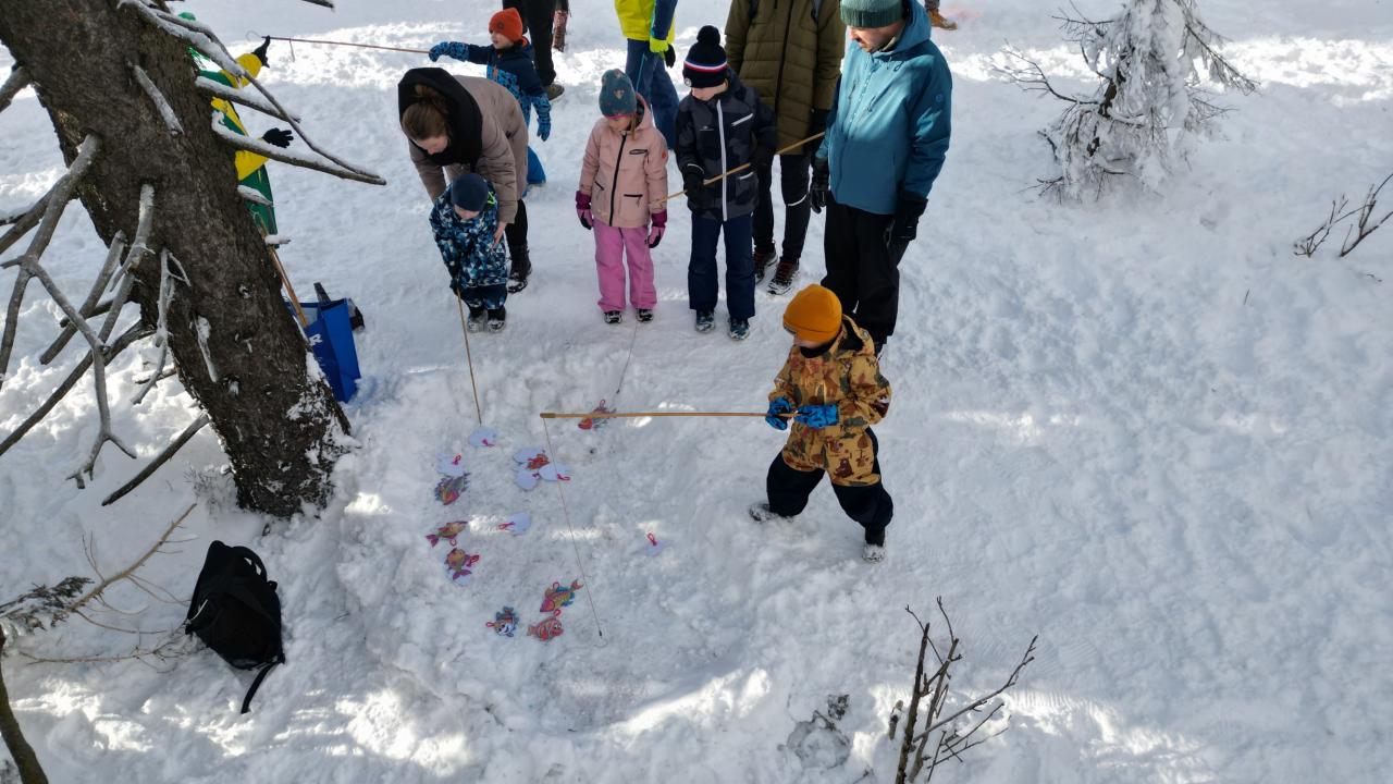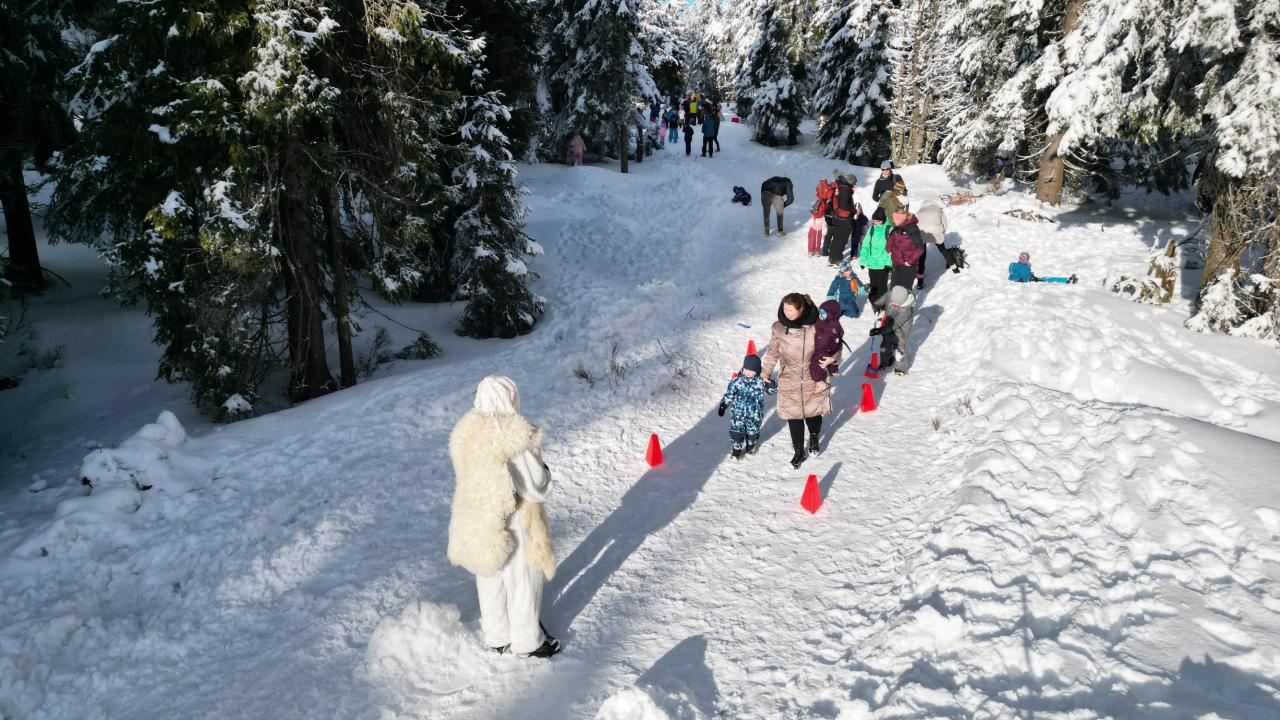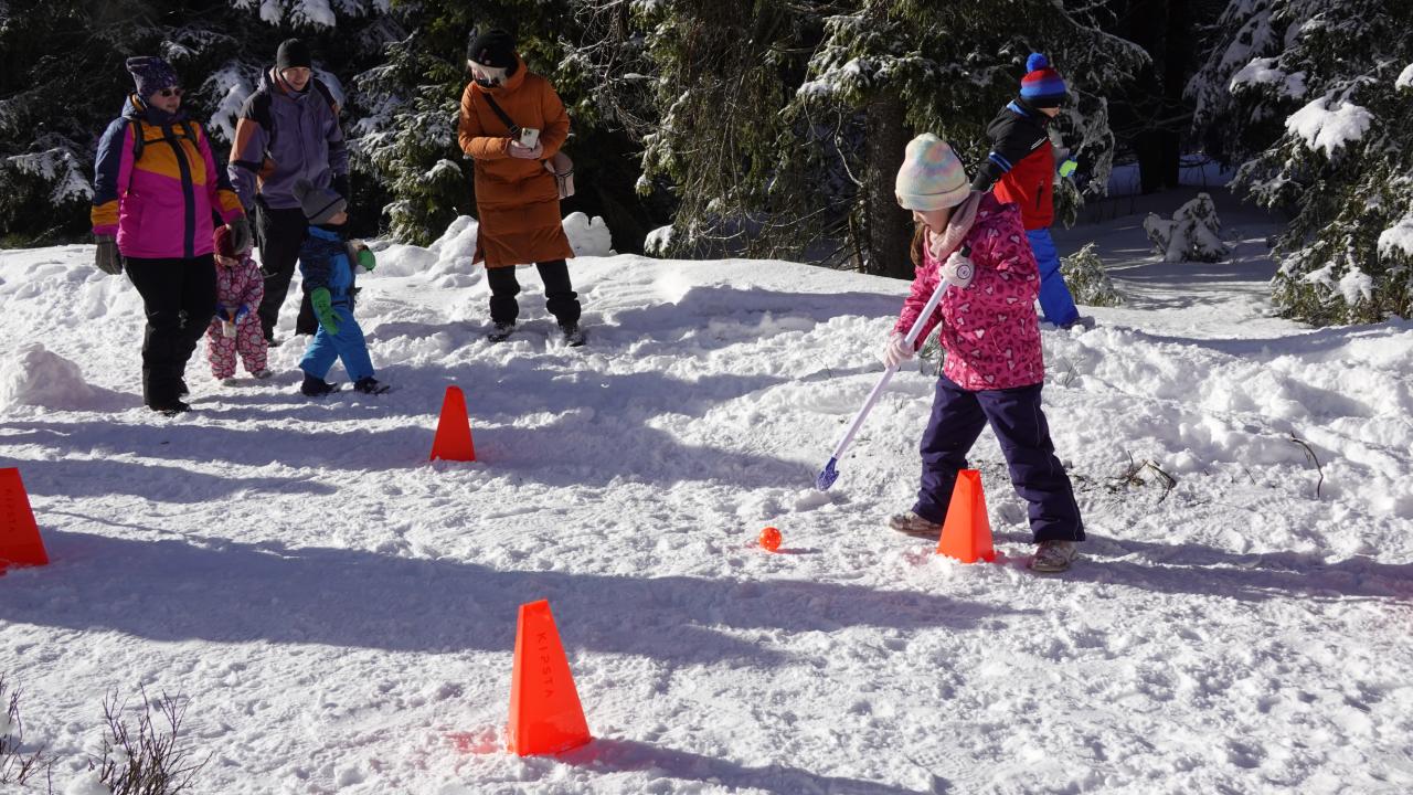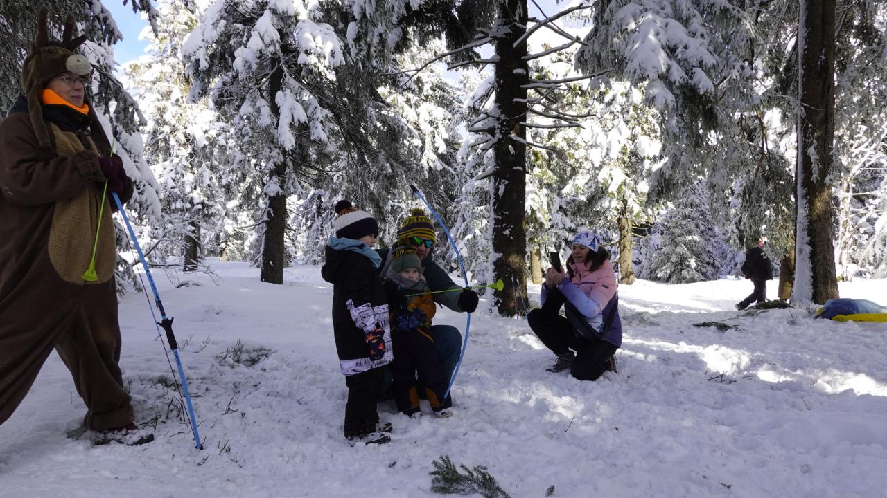 Aby se malí průzkumníci dostali na vrchol, museli nejprve získat mapu a tajemnou indicii, vždyť přeci, když hledám Yettiho, musím o něm něco vědět! Teprve ten, kdo prokázal odvahu, mohl usednout na lanovku, ze které už nebylo cesty zpět. Po náročném výstupu vedla cesta jasným směrem do Yettiho ledové země, kde na naše průzkumníky čekalo sedm disciplín, které měly prověřit jejich zdatnost, šikovnost a důvtip, tolik potřebný pro výpravu do zasněžené krajiny, kde byl Yetti spatřen. Cesta byla dlouhá a namáhavá, v hlubokém sněhu se šlo ztěžka a pomalu, ale kdo chtěl, Yettiho našel. I když se ukázalo, že Sněžný muž je lstiví a mazaný. Kdo vytrval, byl po zásluze odměněn sladkostí, maličkostí a butonem na památku. No, a protože při každé výpravě vyhládne, dostal jako malý bonus každý buřtíka a teplý čaj.
