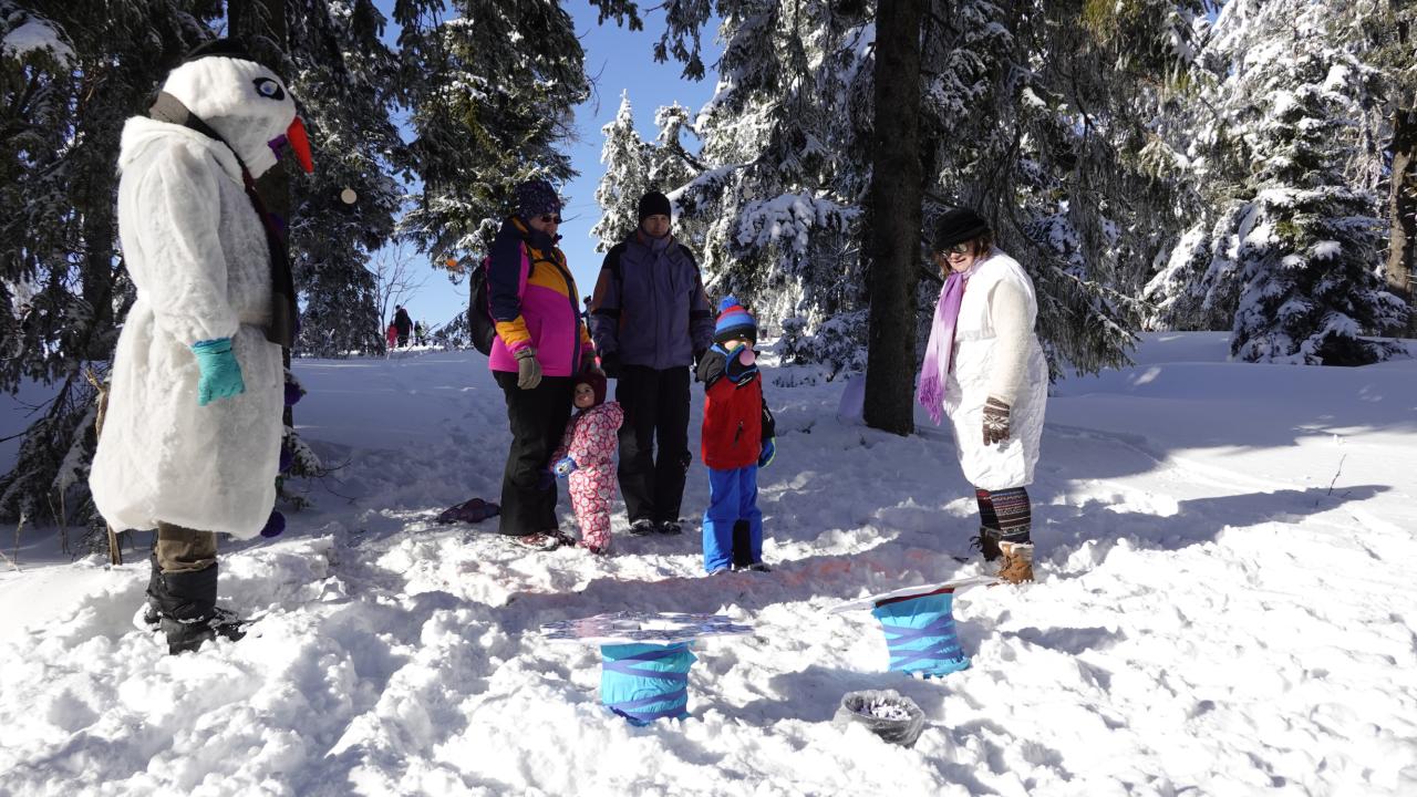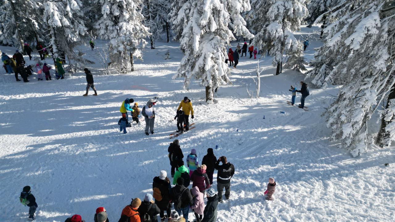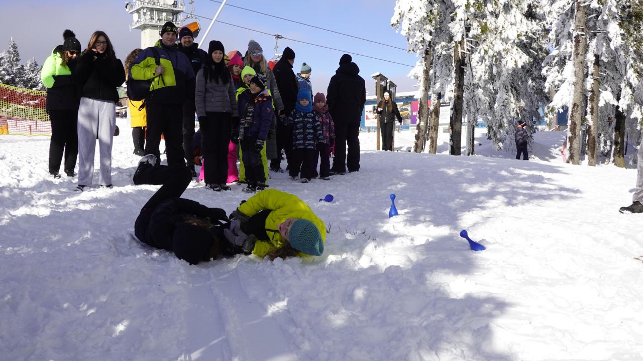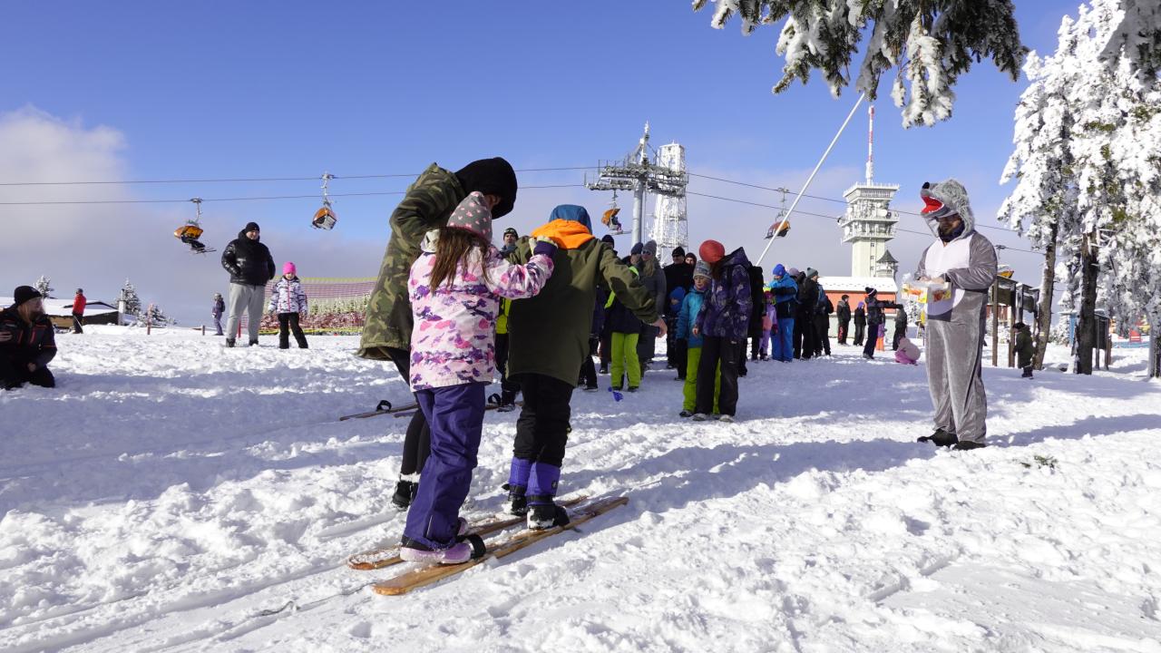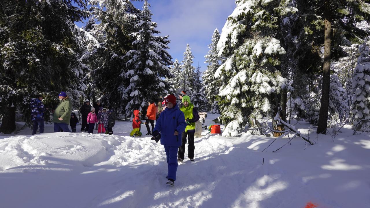 Aby se malí průzkumníci dostali na vrchol, museli nejprve získat mapu a tajemnou indicii, vždyť přeci, když hledám Yettiho, musím o něm něco vědět! Teprve ten, kdo prokázal odvahu, mohl usednout na lanovku, ze které už nebylo cesty zpět. Po náročném výstupu vedla cesta jasným směrem do Yettiho ledové země, kde na naše průzkumníky čekalo sedm disciplín, které měly prověřit jejich zdatnost, šikovnost a důvtip, tolik potřebný pro výpravu do zasněžené krajiny, kde byl Yetti spatřen. Cesta byla dlouhá a namáhavá, v hlubokém sněhu se šlo ztěžka a pomalu, ale kdo chtěl, Yettiho našel. I když se ukázalo, že Sněžný muž je lstiví a mazaný. Kdo vytrval, byl po zásluze odměněn sladkostí, maličkostí a butonem na památku. No, a protože při každé výpravě vyhládne, dostal jako malý bonus každý buřtíka a teplý čaj.