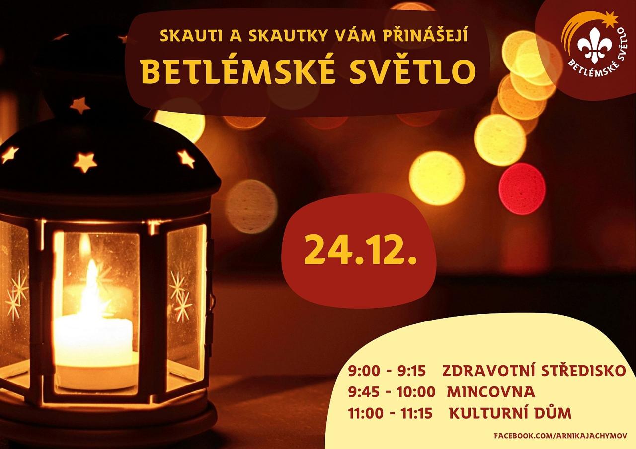 Pro případné dotazy prosím využijte e-mail arnikajachymov@centrum.cz. Aktuální informace o Betlémském světle naleznete na www.betlemskesvetlo.cz, o roznášení skauty v Jáchymově na střediskovém facebooku: facebook.com/arnikajachymov.