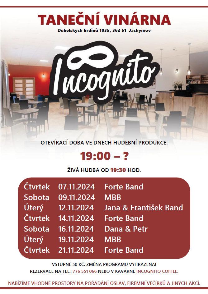Taneční vinárna Incognito, tř. Dukelských hrdinů 1035, Jáchymov, 36251