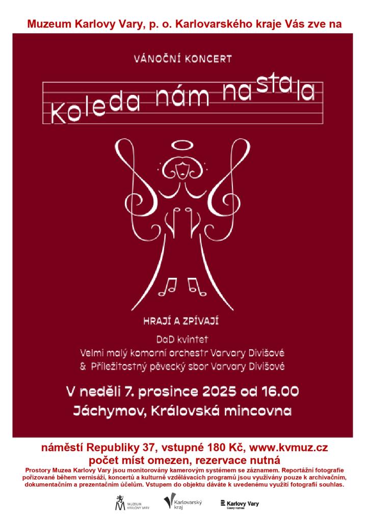 KOLEDA NÁM NASTALA Hrají a zpívají DaD kvintet Velmi malý komorní orchestr Varvary Divišové a Příležitostný pěvecký sbor Varvary Divišové. Počet míst omezen, rezervace nutná!